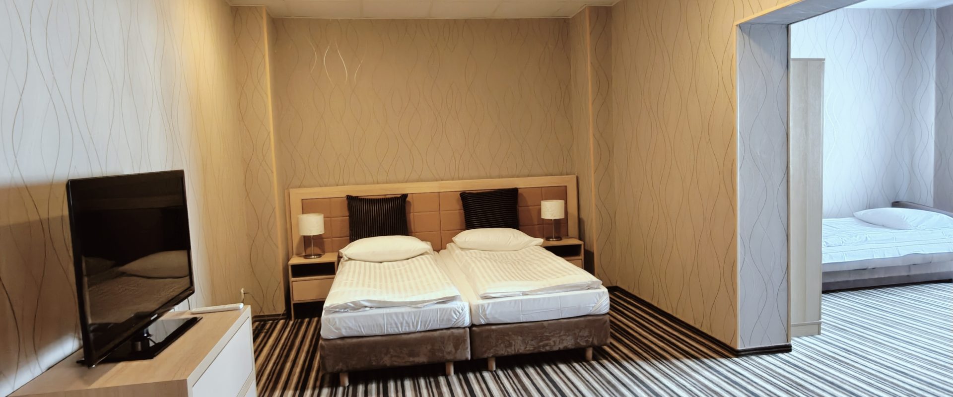 Pokój trzyosobowy Superior to przestronna i elegancka propozycja dla rodzin lub grupy przyjaciół, ceniących podwyższony standard i wygodę. Wyposażony w trzy komfortowe łóżka (lub łóżko małżeńskie i pojedyncze), nowoczesną, dużą łazienkę z prysznicem, część wypoczynkową oraz biurko do pracy, zapewnia pełen komfort pobytu. Stylowe wnętrze, klimatyzacja, telewizor z płaskim ekranem, szybkie Wi-Fi oraz zestaw do parzenia kawy i herbaty tworzą idealne warunki do relaksu po intensywnym dniu.